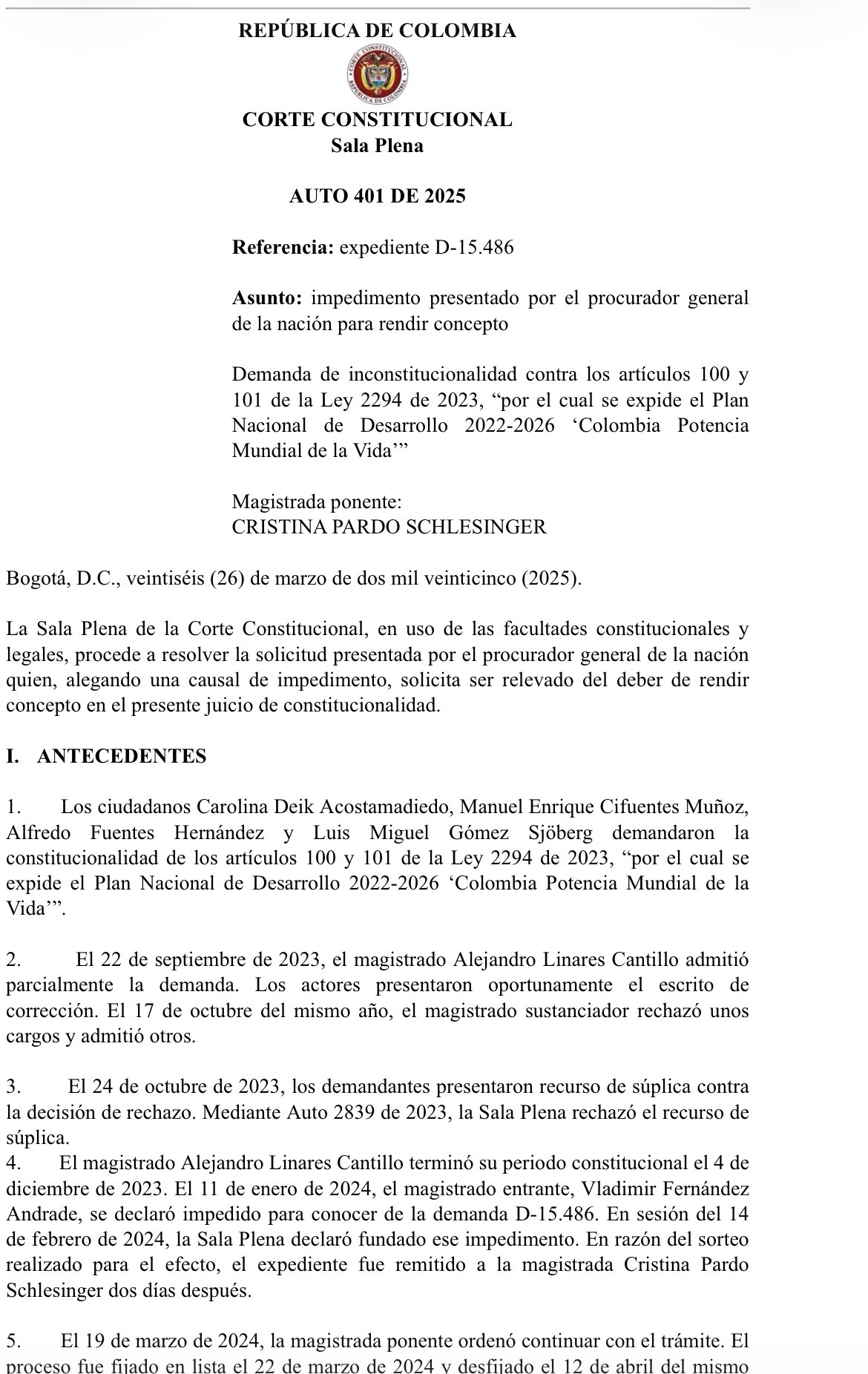El texto oficial del pronunciamiento puede consultarse aquí:👉🏼 Auto A-401/25